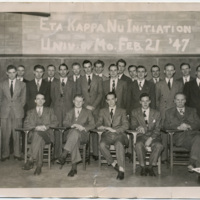 Initiates of the engineering honor society Eta Kappa Nu at the University of Missouri in 1947. Warfield is in the back row, third from the right.