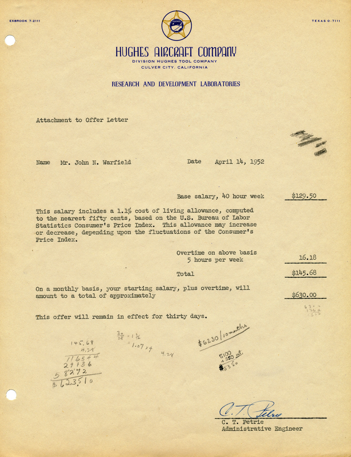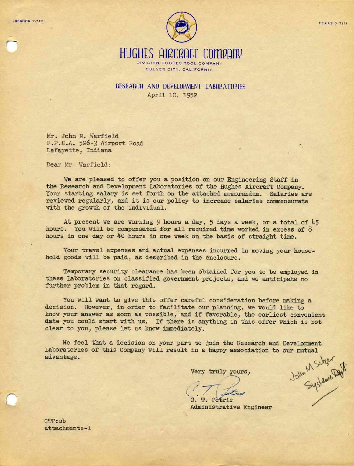 C.T. Petrie, "Offer Letter from Hughes Aircraft," in Dr. John Warfield, Item #185, https://warfield.gmu.edu/items/show/185 (accessed December 11, 2025).