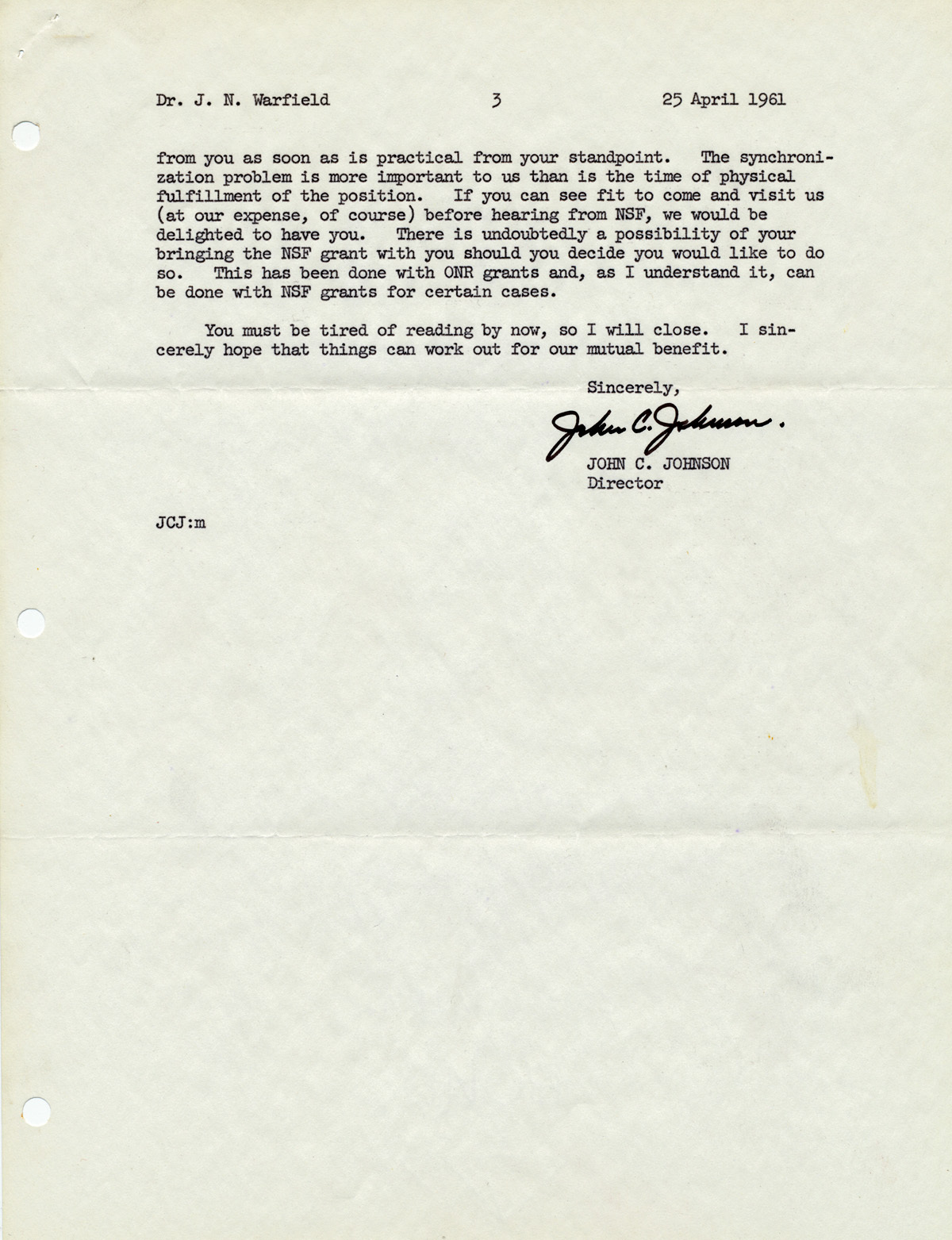 John C. Johnson, "Letter from John C. Johnson, Ordnance Research Laboratory," in Dr. John Warfield, Item #187, https://warfield.gmu.edu/items/show/187 (accessed February 1, 2026).