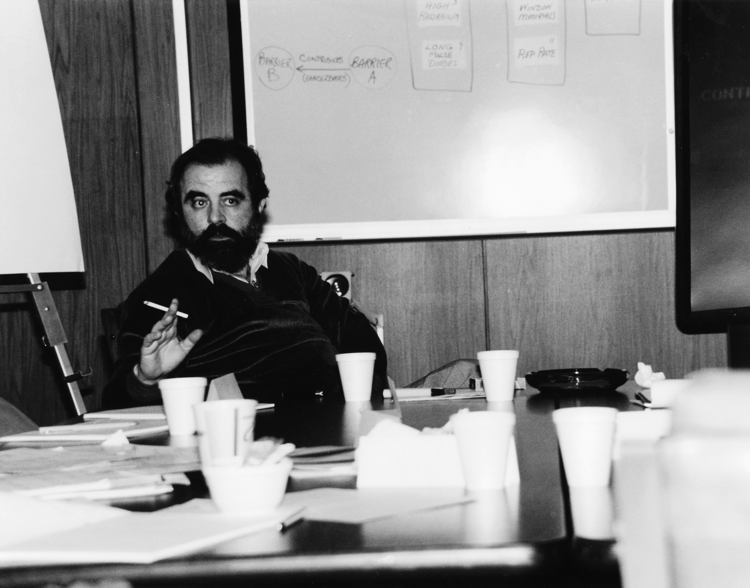 Alexander Christakis, Director of the Center for Interactive Management, leads an IM session in 1984 with the Naval Surface Weapons Center.