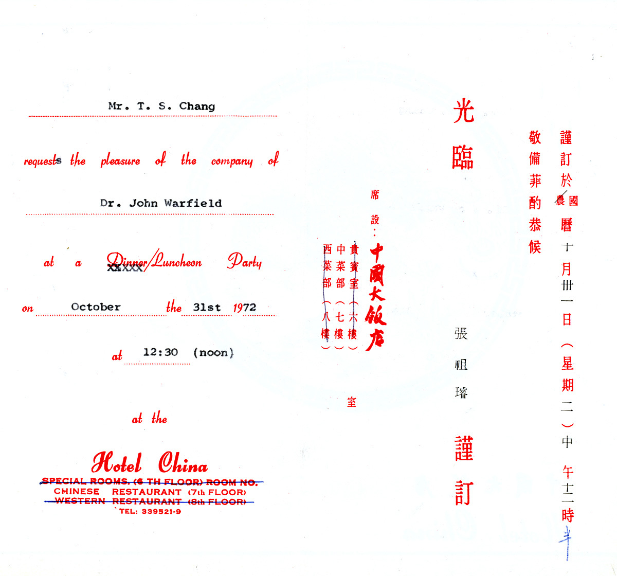 T.S. Chang, "Invitation to a Luncheon," in Dr. John Warfield, Item #221, https://warfield.gmu.edu/items/show/221 (accessed November 14, 2025).
