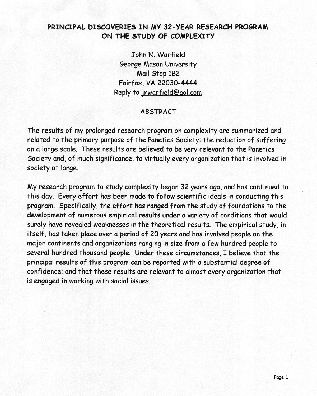 John Warfield, "Principal Discoveries in My 32-Year Research Program on the Study of Complexity," in Dr. John Warfield, Item #240, https://warfield.gmu.edu/items/show/240 (accessed January 24, 2026).