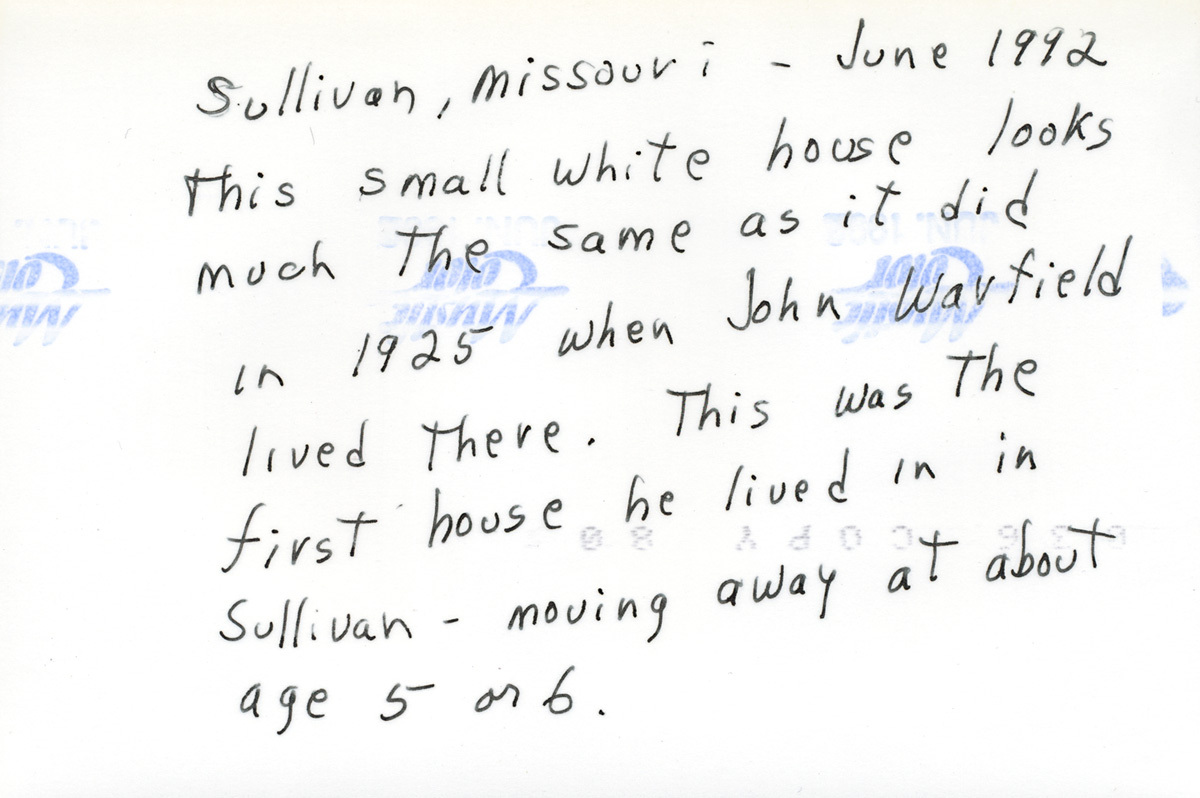 A 1992 photograph of one of Warfield's childhood homes in Sullivan, MO.