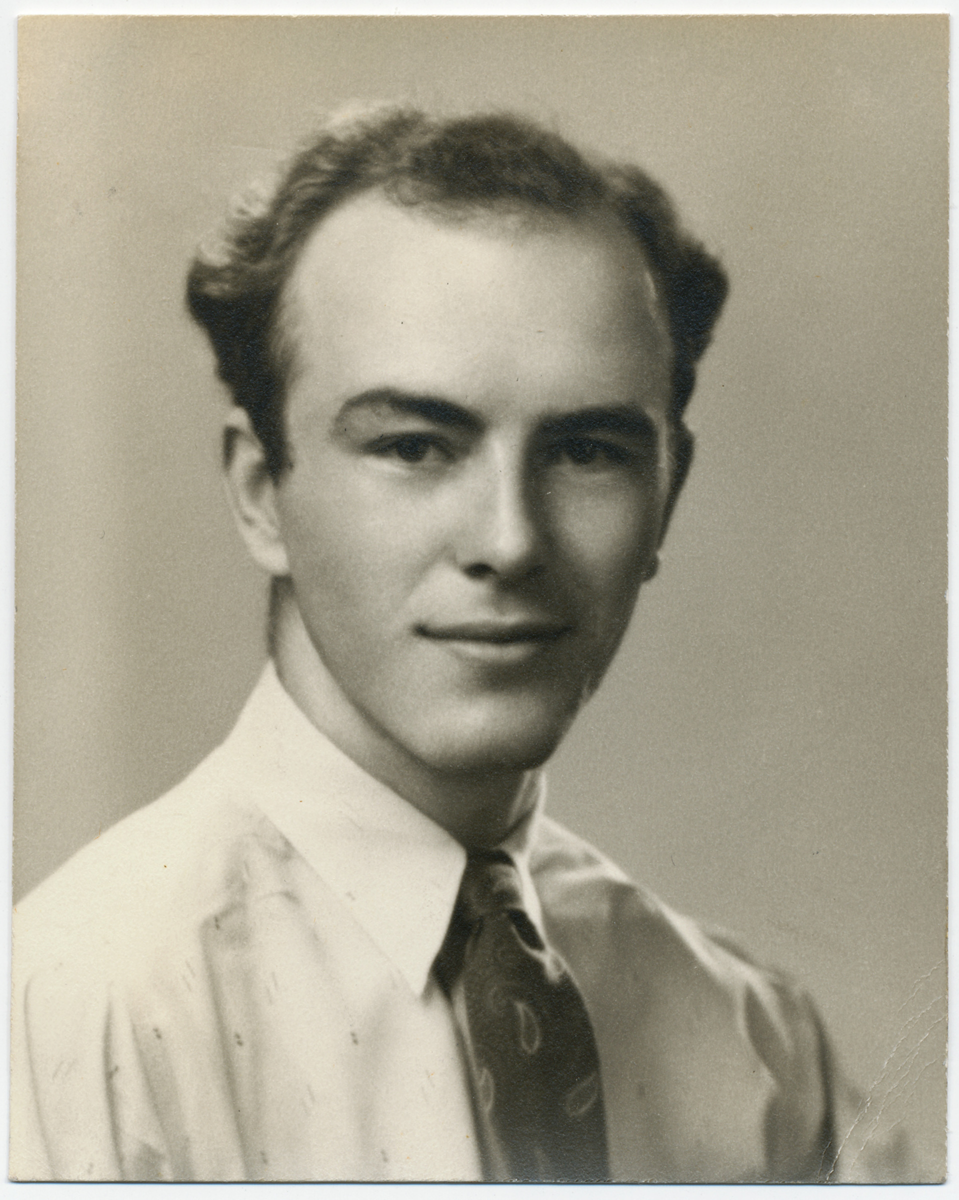 Warfield poses for a studio portrait in Columbia, MO, in 1947.